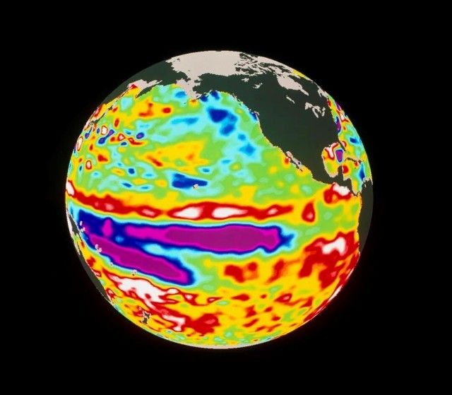 显示拉尼娜现象的彩色海平面地图(图源:视觉中国)