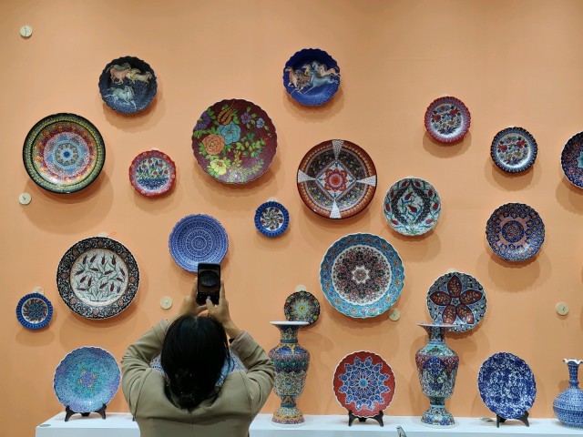 瓷博会土耳其展位里的特色瓷器吸引众多观众拍照打卡。中青报·中青网见习记者 贾子凡/摄