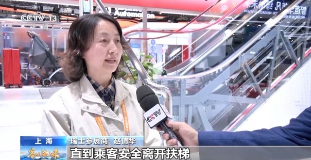瑞士参展商 赵倩华当系统识别到乘客在扶梯上摔倒时,扶梯的速度自动降低至50%甚至更低,直到乘客安全离开扶梯。技术还在持续优化中,我们希望这款产品能够尽快从进博会的展台走向中国的不同城市。