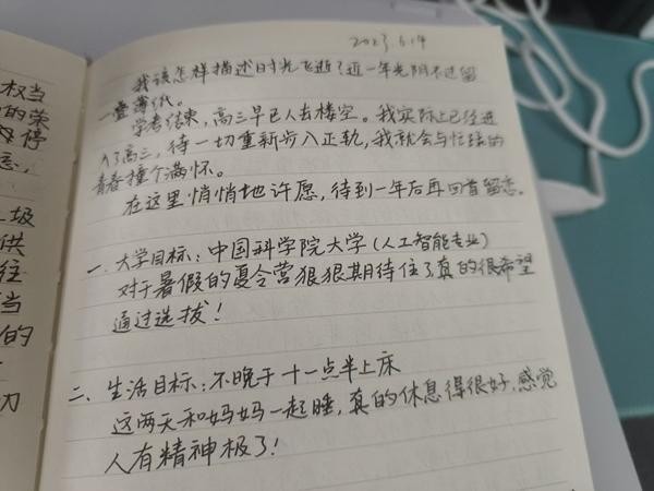 谢明芪高中时的日记本写着,理想专业是“人工智能”。受访者供图