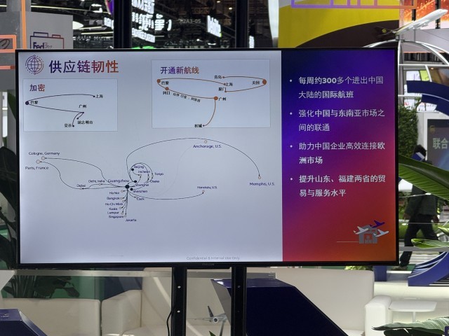 联邦快递也是进博会的“全勤生”。本届进博会上,这家全球最具规模的速递运输公司之一重点展示了在中国市场的关键进展:在北京、上海、广州、深圳、青岛和厦门设有6个国际口岸操作中心,每周进出中国大陆的国际航班超过300架次,高效连接了中国客户与全球市场。近期,联邦快递每周新增5个货运航班,分别从上海和广州出发前往法国巴黎。