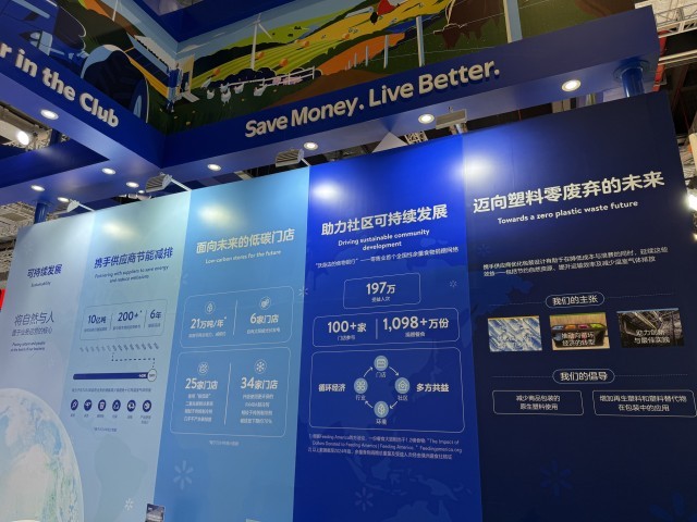 11月7日,上海,第八届中国国际进口博览会,沃尔玛展台展出其探索低碳转型路径的实践成果。中青报·中青网记者 马子倩/摄
