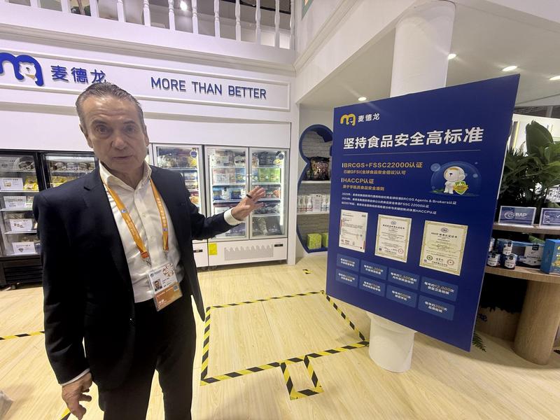 对记者说出这句话时,蔡天乐正站在其第八届进博会展台内的冰柜前。冰柜里装有泰国高盐产区黑虎虾、意大利奶酪、西班牙伊比利亚黑猪排等来自世界各地的产品。蔡天乐说,“没人希望让商业变得复杂”,这成为很多扎根中国的美国企业的共同心声。