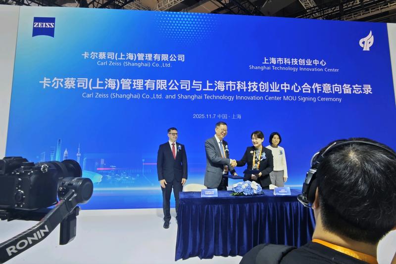 11月7日,蔡司与上海市科技创业中心签署了合作意向备忘录。未来双方将致力于通过整合资源、共享经验,共同推动前沿技术的研发和产业化应用,为上海的创新能力建设提供坚实的社会基础,为中国的科技创新和产业创新贡献力量。