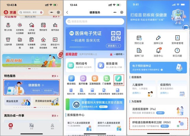 1、京通小程序→健康服务→疫苗接种→呼吸道合胞病毒单抗注射(RSV)