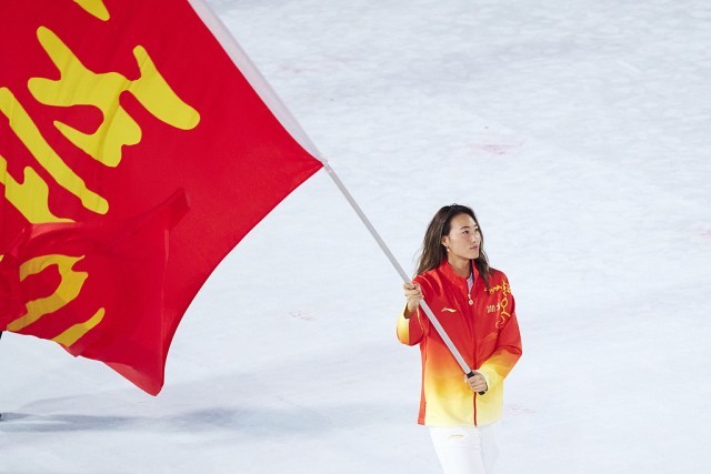 郑钦文在十五运会开幕式上作为湖北代表团旗手入场。视觉中国供图