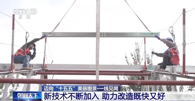 借助这种钢结构屋顶,改造团队这次实现了“分段流水作业”和“预制式装配”等施工工艺,使得单栋楼的屋面施工周期从以前的2个月压缩到了仅需20天左右。记者在现场看到,几名工人像“搭积木”一样,不到一上午的时间,就能搭好这样一组钢结构的房架。