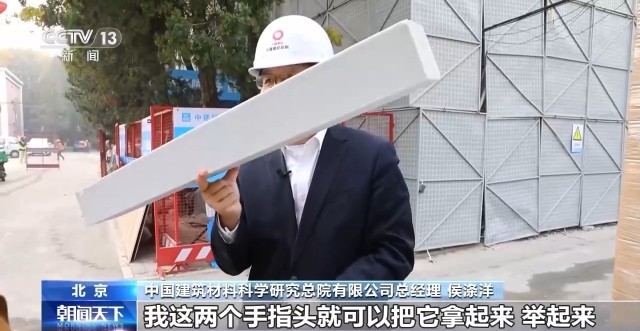 中国建筑材料科学研究总院有限公司总经理 侯涤洋:像这种发泡陶瓷是很轻的,我这两个手指头就可以把它拿起来,举起来。这种材料耐热系数会更高,保温也好,就像给房屋穿上一件棉袄一样。