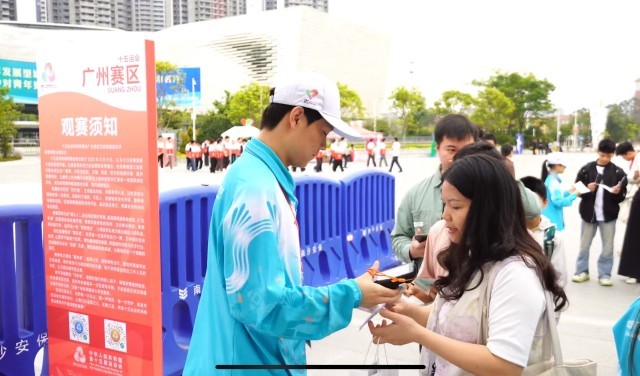 11月10日,第十五届全国运动会武术套路比赛在广州南沙体育馆收官。来自广州的“00后”志愿者李镁雪也结束了她的“最后一班岗”。