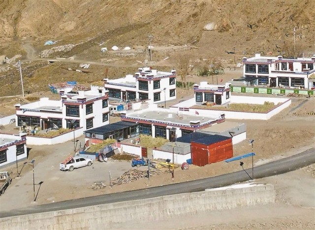 图为日喀则市定日县长所乡古荣村的灾后重建新居一角。本报记者 卓玛七林 摄
