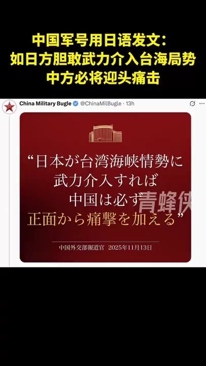 中国军号用日语发文:如日方胆敢武力介入台海局势,中方必将迎头痛击