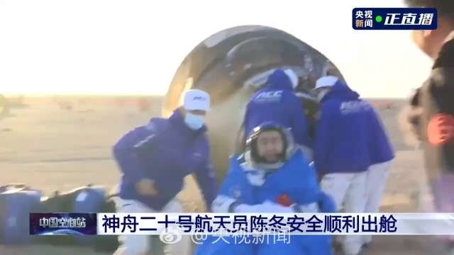 神二十3名航天员平安归来!五星红旗和返回舱同框