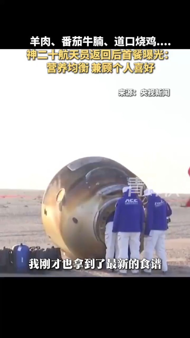 羊肉、番茄牛腩、道口烧鸡……神二十航天员返回后首餐曝光