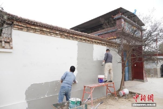 11月14日,在航天员陈中瑞老家河南滑县陈大召村,其父母专程从省外返回老家粉刷院墙、打扫卫生,让小院焕然一新,迎接英雄“回家”。图为陈中瑞老家外墙被粉刷一新。赵梦阳 摄