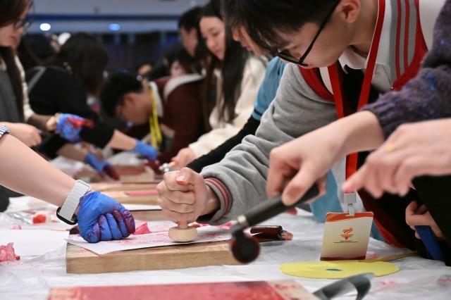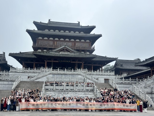 中国青年报客户端讯 (中青报·中青网记者 张昊天 李媛媛 李悦 国新冠)11月16日,来华参加“红色研学之旅”之“薪火相传”研学营的越南青年造访了世界文化遗产——重庆大足石刻,并亲身体验了丰富多彩的中国传统非物质文化遗产。
