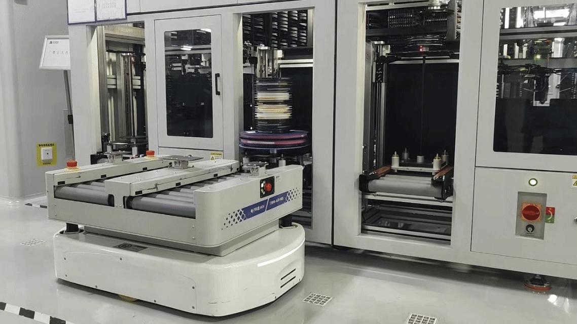 AGV机器人在智能备料仓自动调配料件(央广网记者 韩雨晨 摄)