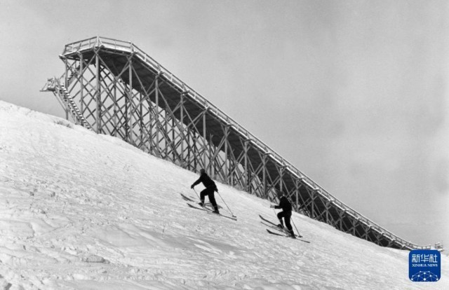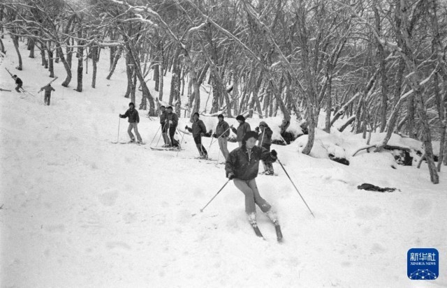 这是1957年拍摄的吉林省通化市的滑雪场。新华社记者胥志成摄