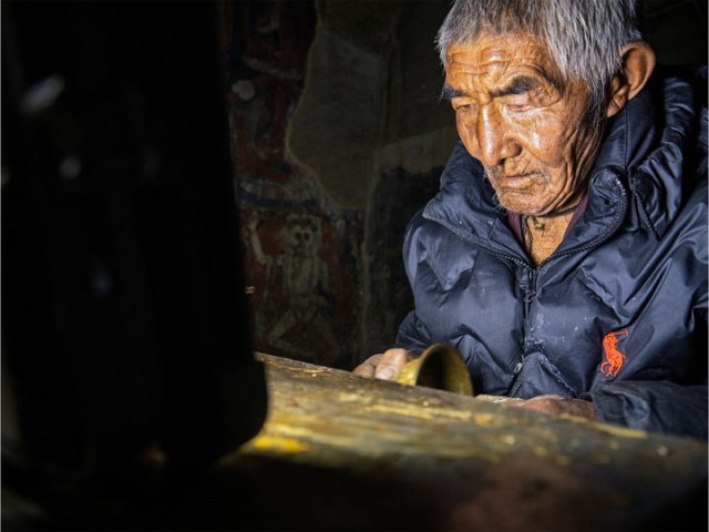 很多年里,只有阿旺老人在守护着偏远的石窟——就连当地人也不理解阿旺在做些什么。“那会儿大家都觉得这些画没什么特别的。”阿旺说,“但我觉得只要保护好,以后会有人明白的。”