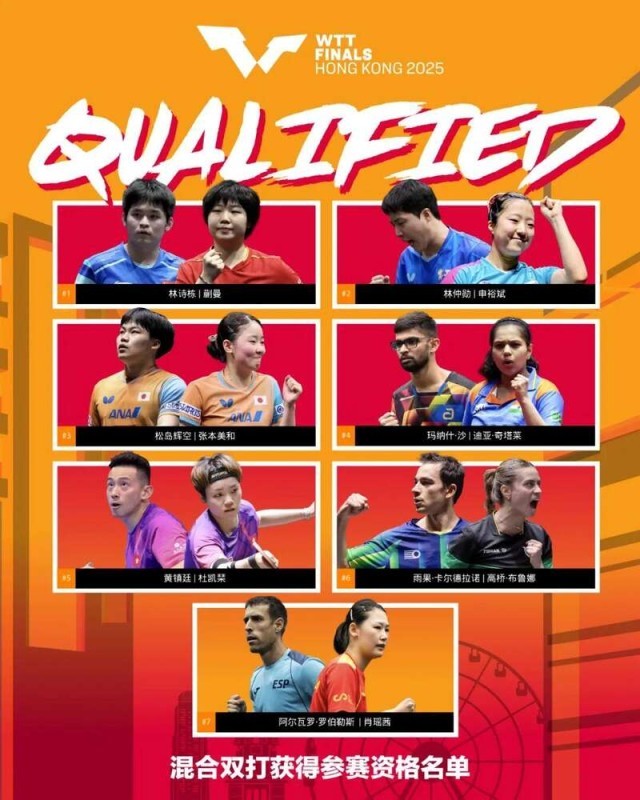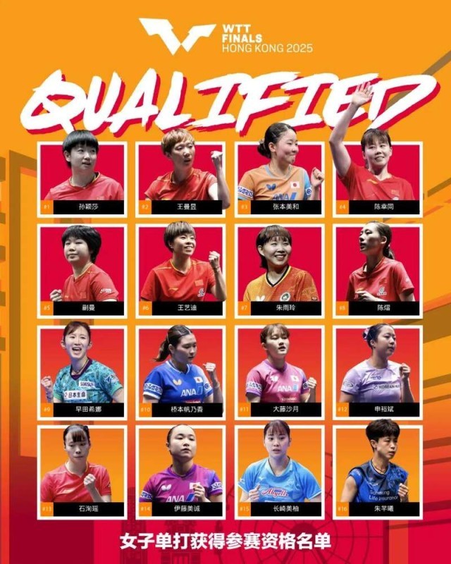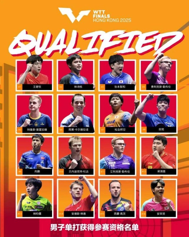 WTT香港总决赛2025将于12月10日至14日在中国香港红磡体育馆举行,随着WTT球星挑战赛马斯喀特站结束,获得男女单打参赛资格名单已经确定,混双也仅剩外卡名额尚待公布,来看具体参赛资格名单!