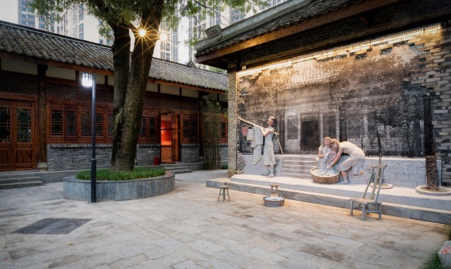 皂荚树下的浮雕还原了江竹筠和同学们当年的生活场景。四川大学供图