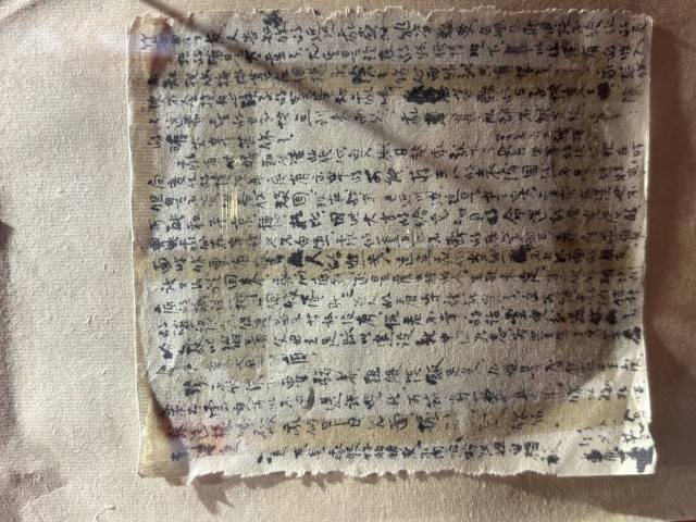 另一面展墙上,一张小小的、边缘已泛黄起皱的信纸,也令参观者动容。这是江姐在渣滓洞监狱中用竹签作笔,蘸着棉花灰调制的墨水写下的托孤遗书:假若不幸的话,云儿就送给你了。盼教以踏着父母之足迹,以建设新中国为志,为共产主义革命事业奋斗到底……