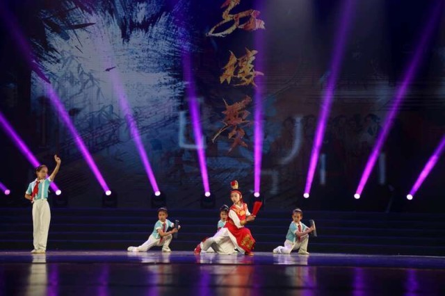 有别于教室里的思政课,这堂舞台上的“大思政课”不拘泥于“讲”,而是嵌入了情景音乐短剧、舞蹈短剧、戏曲等形式,甚至有小学生与四大名著里的知名角色“过招”。