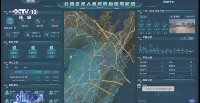 在重庆北碚区,这样的无人机机场一共有5个,可以24小时按照固定航线和固定时间进行巡检,还能“聪明”地自主帮助城市管理者及时发现各类问题。