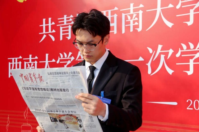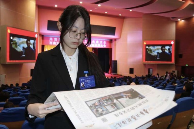 在大会现场,西南大学准备了1000份《中国青年报》,供与会嘉宾、代表阅读参考。西南大学团委供图