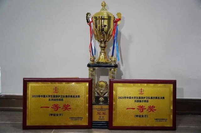 广东医科大学国旗护卫队以甲组女子组升旗展示、队列动作展示第一名的好成绩获一等奖,以最高的总分荣获团队冠军。