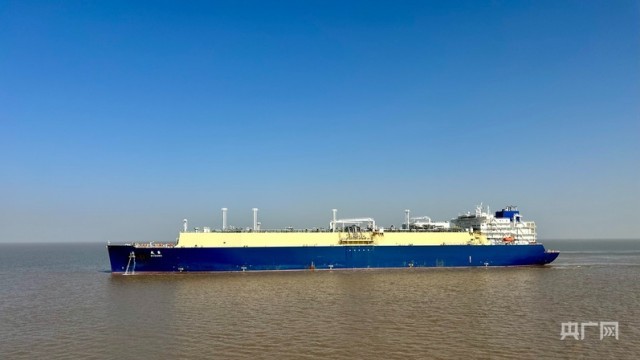 “武当”号LNG运输船即将靠岸(央广网记者 顾炀威 摄)