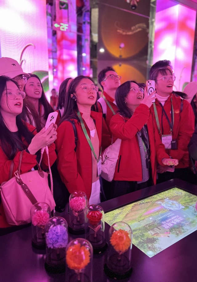 12月1日,云南昆明,中国斗南花卉展览馆,越南青年走进智慧种植·鲜花生长打卡空间。中青报·中青网记者 蒋继璇/摄