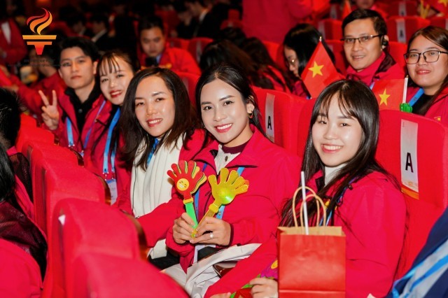 董霞在致辞中表示,中国和越南是山水相连的社会主义友好邻邦,是好邻居、好朋友、好同志、好伙伴。共同的理想信念是中越友好的红色基因,一代代追求理想之光的青年是社会主义事业的未来希望。希望中越青年赓续红色基因,做中越友谊的传承者;加强互学互鉴,做中越社会主义事业的推动者;深化团结合作,做中越命运共同体的建设者,把两国领导人的共同期待转化为两国青年的共同行动。