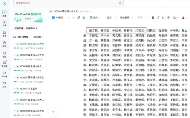 澎湃新闻注意到,源自百度文库《10000中国普通人名大全》中的多个名字,还集中出现在一个名为“东田邻里中心驾驶舱”的网站(https://bg.dtll.dasding.cn/#/main)上。