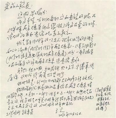 作家王火写给朱成山馆长的信 侵华日军南京大屠杀遇难同胞纪念馆藏