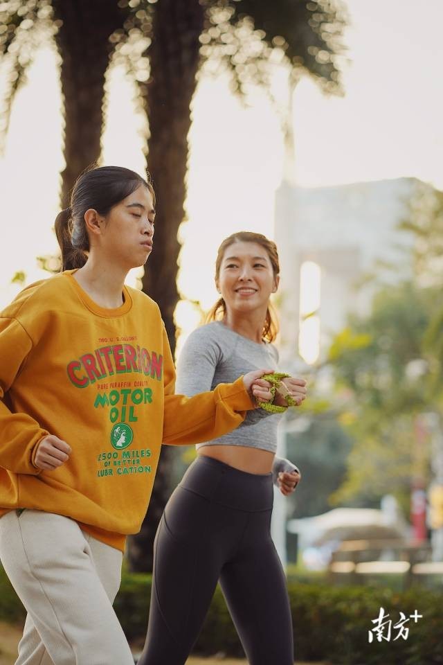 跑步时,许兴群会告诉周皖湘沿途听到的声音。这让周皖湘更加留意身边的小细节,发现了很多曾错过的美好瞬间,“这种体验给我打开了一扇门,让我看到了不一样的世界。”