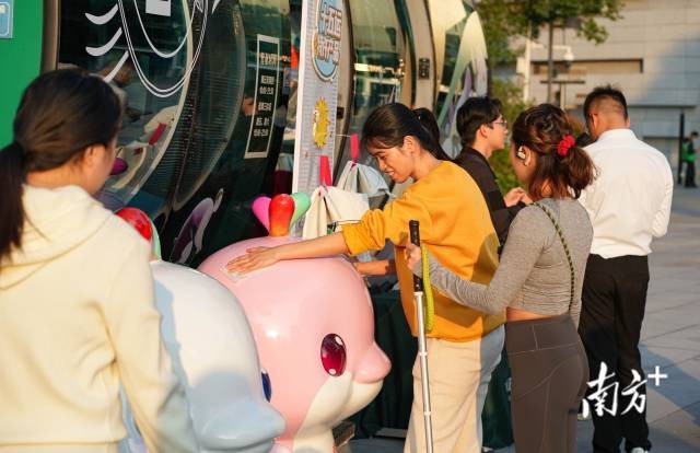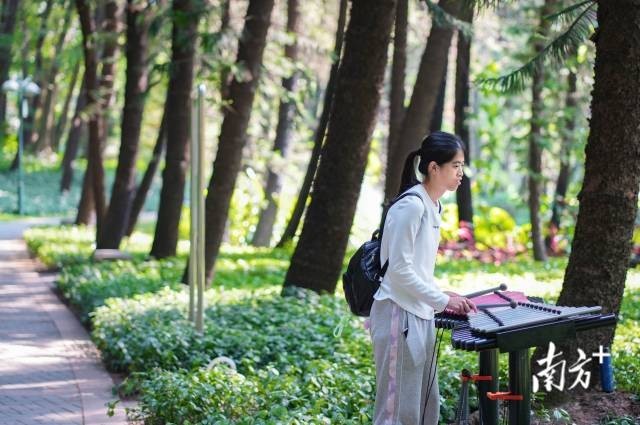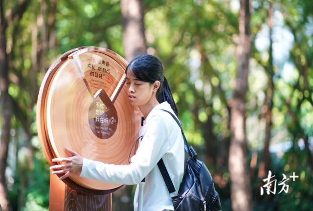12月8日,广州珠江公园,许兴群正在转动疗愈互动装置。