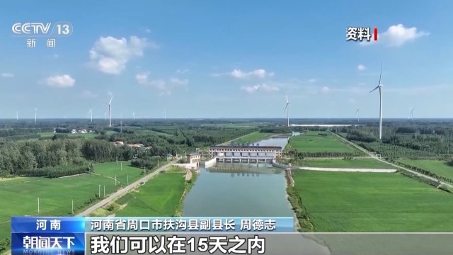 河南省周口市扶沟县副县长 周德志:发生旱情的时候,我们可以在15天之内,把全县的干支渠蓄满水,最高时候可达到7000万立方米,有效缓解旱情。汛情的时候,我们两天之内可以把田里的水全部排空,真正能做到旱能浇,涝能排。