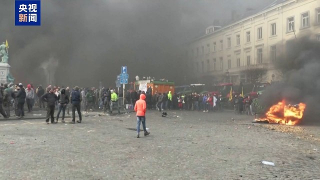 总台记者 顾鑫:在位于布鲁塞尔市中心的卢森堡广场,我们可以看到大量来自欧洲各地的农民驾驶拖拉机来到这里,抗议欧盟的相关政策。在现场他们燃烧垃圾并向警察投掷鞭炮和杂物,警方使用高压水枪和催泪瓦斯进行回应。整个现场弥漫着刺鼻的气味。