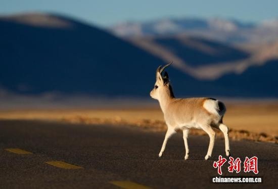藏原羚穿过公路。
