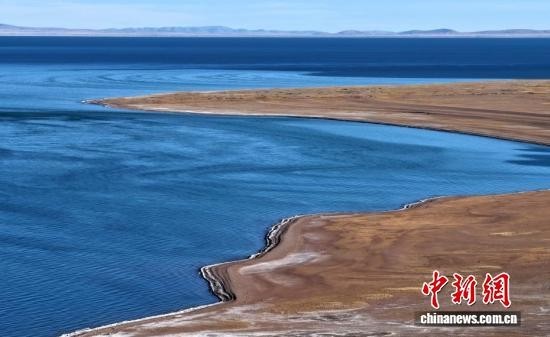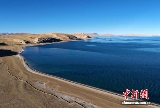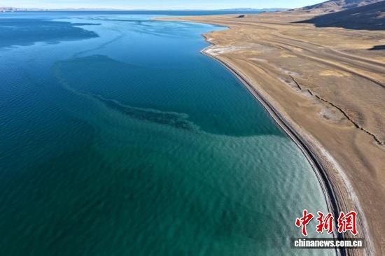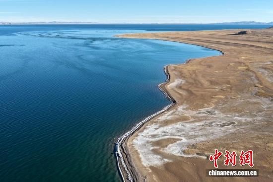 12月20日,航拍冬日色林错。色林错位于藏北那曲,是西藏第一大湖泊,湖面海拔4530米,是青藏高原形成过程中产生的一个构造湖。冬日,阳光照耀下,湖泊景色壮丽。图为色林错景色。(无人机照片)