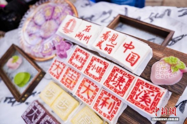浙江湖州,茅坞村年猪饭活动特色市集上的米糕。湖州市新闻传媒中心供图