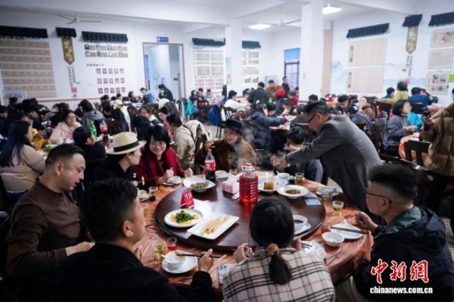 浙江湖州,村民、游客在茅坞村共享年猪饭。湖州市新闻传媒中心供图