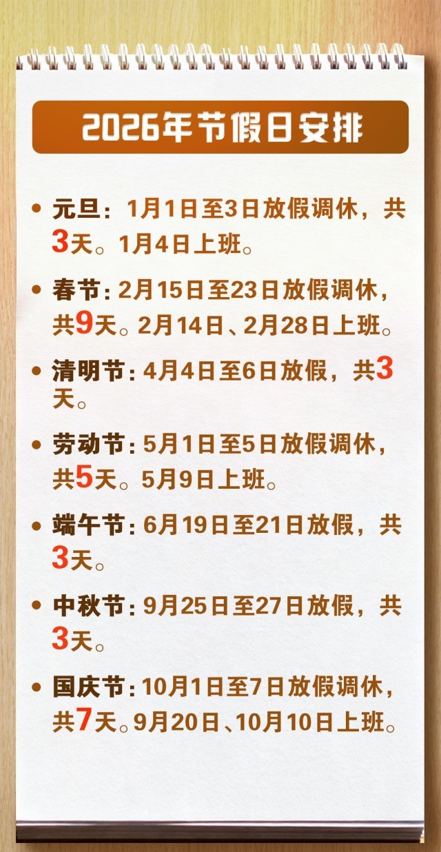 再过2天2026年元旦假期就要来了,此前,国务院办公厅发布了《关于2026年部分节假日安排的通知》,春节、劳动节等节假日怎么休?