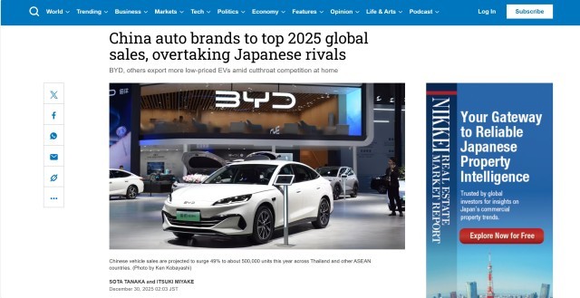 中国青年报客户端北京12月30日电 (中青报·中青网记者 张昊天)在新能源汽车日趋成熟与整车出口规模扩张的背景下,2025年有望成为中国汽车产业发展史上的新里程碑。近日,日本“日经亚洲”网站、韩国《朝鲜日报》网站和多家行业媒体报道指出,2025年,中国将首次超越日本,成为全球生产新车最多的国家。