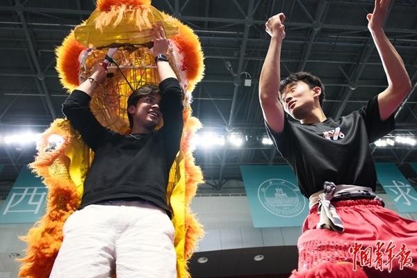 2025年6月16日,山西太原,山西大学,来自美国爱达荷州的青年费尔南多正在学习体验舞狮。6月11日至17日,山西省青年联合会、山西省外事办共同主办“青历华夏·联创未来:中国(山西)-美国青年文化交流营”,数十名美国青年走进山西,开启文化交流之旅。中青报·中青网记者 田嘉硕/摄