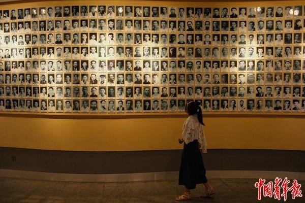 2025年8月5日,云南瑞丽畹町镇,南洋华侨机工回国抗日纪念馆,一名小游客在南侨机工英雄墙前驻足。抗日战争期间,来自马来西亚、新加坡等地的3200多名青年华侨机工回国支援,为抗日战争和世界反法西斯战争的胜利作出了不可磨灭的贡献。中青报·中青网记者 田嘉硕/摄