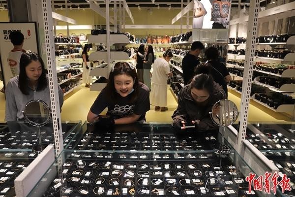2025年8月26日,北京一家大型二手交易平台的线下商店内,年轻人们在琳琅满目的二手首饰前驻足挑选。众多栖居于大城市的年轻人正体验着“二手”生活。在某社交媒体平台上,“二手”话题的浏览量高达6.8亿,讨论度达861.8万,将前来交换、买卖二手物品的年轻人相互连接。实习生 姚沐含/摄