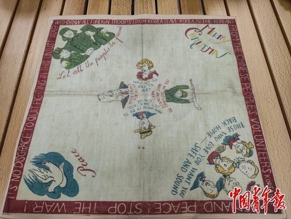 刘娜娜根据博物馆藏品仿制的抗美援朝战场上中国人民志愿军向美军投放的劝降手帕。中青报·中青网见习记者 陈宇龙/摄