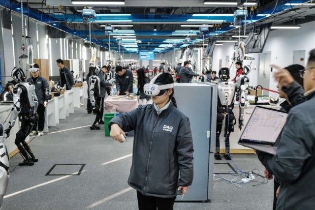 资料图:北京一家人形机器人数据训练中心,机器人训练师正在工作。中青报·中青网记者 赵迪/摄