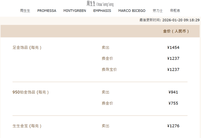 本周,国内金饰价格持续上涨,多品牌金饰克价站上1450元。中新经纬查询发现,20日,周生生报价1454元/克,两日上涨25元;老凤祥报价1456元/克;老庙黄金报价1455元/克。
